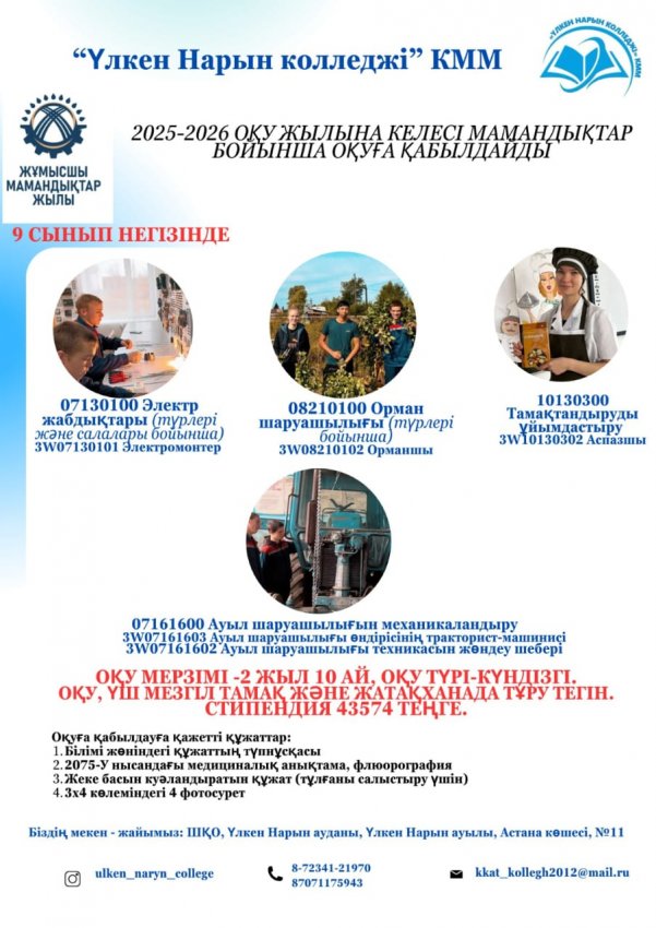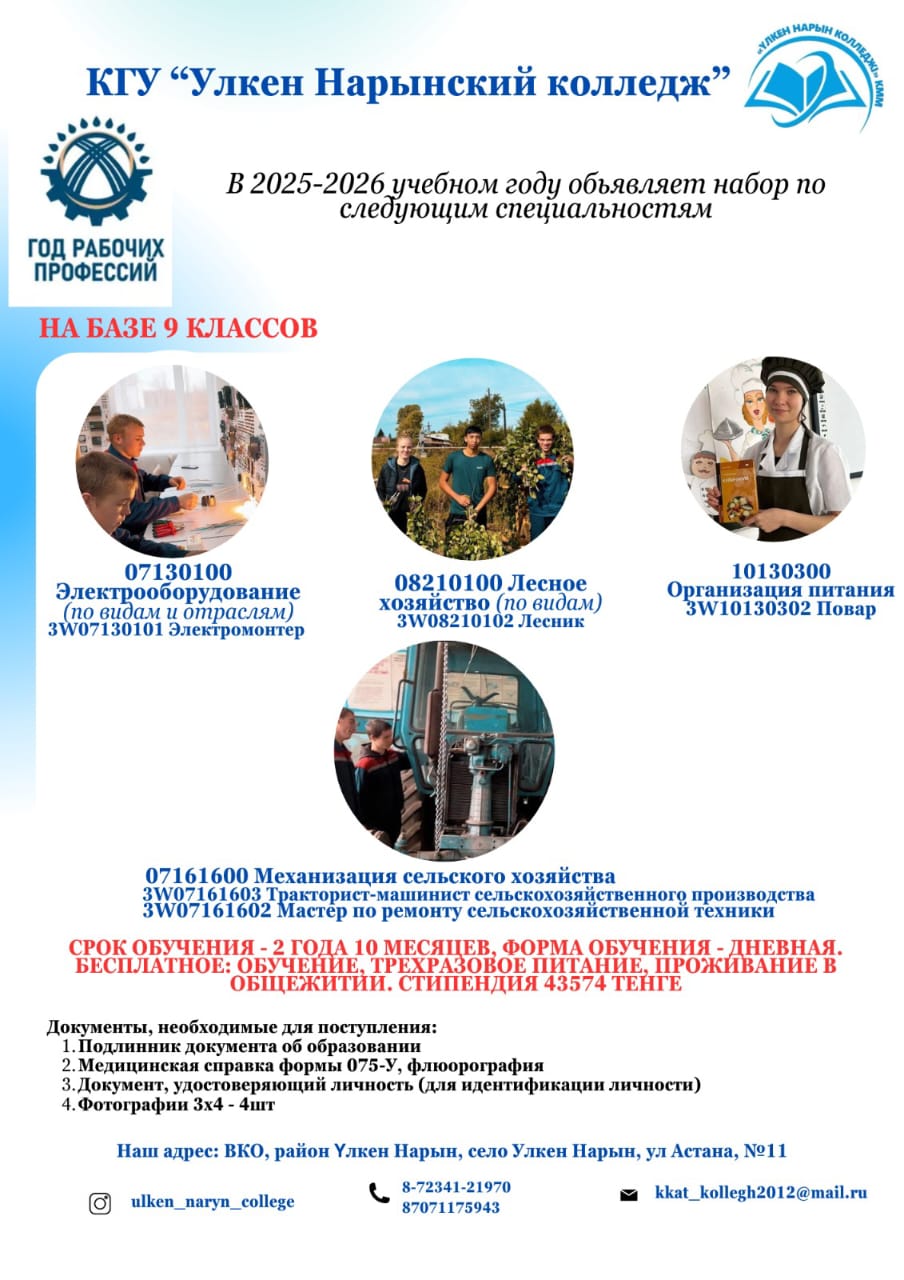 2025-2026 жаңа оқу жылына қабылдау » «Үлкен Нарын колледжі»